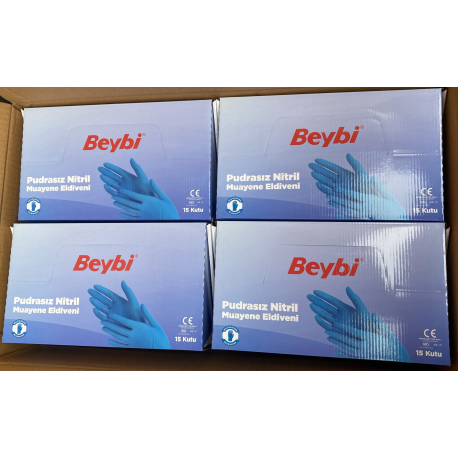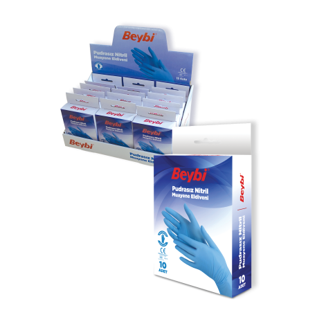 BEYBİ PUDRASIZ NİTRİL MUAYENE ELDİVENİ MAVİ 10'LU
