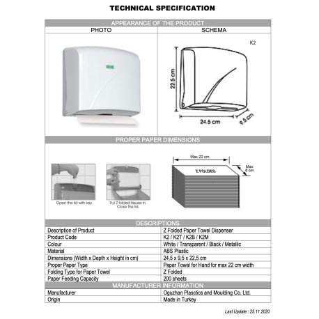 VİALLİ VİALLİ K2 Z KATLI KAĞIT HAVLU DİSPENSERİ 200'LÜ BEYAZ Tamamlayıcı Ürünler BELLEZA EXTRA Z KATLI DİSPENSER HAVLU 200*12 BELLEZA STANDART Z KATLI DİSPENSER HAVLU 150*12 BELLEZA ULTRA Z KATLI DİSPENSER HAVLU 200*20 BELLEZA Z KATLI DİSPENSER HAVLU 150*12 BELLEZA Z KATLI DİSPENSER HAVLU 200*12 Barkod 869 742837 112 0 Maksimum Kağıt Genişliği 22 cm