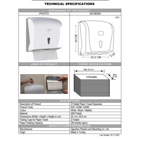 VİALLİ VİALLİ K20 Z KATLI KAĞIT HAVLU DİSPENSERİ 200'LÜ BEYAZ Tamamlayıcı Ürünler BELLEZA EXTRA Z KATLI DİSPENSER HAVLU 200*12 BELLEZA STANDART Z KATLI DİSPENSER HAVLU 150*12 BELLEZA ULTRA Z KATLI DİSPENSER HAVLU 200*20 BELLEZA Z KATLI DİSPENSER HAVLU 150*12 BELLEZA Z KATLI DİSPENSER HAVLU 200*12 Barkod 869 742837 174 8