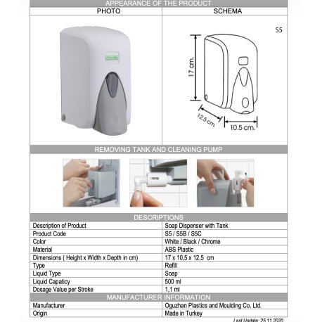 VİALLİ S5B SIVI SABUN DİSPENSERİ 500 ML SİYAH